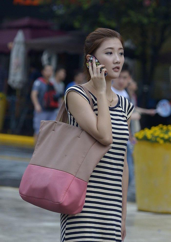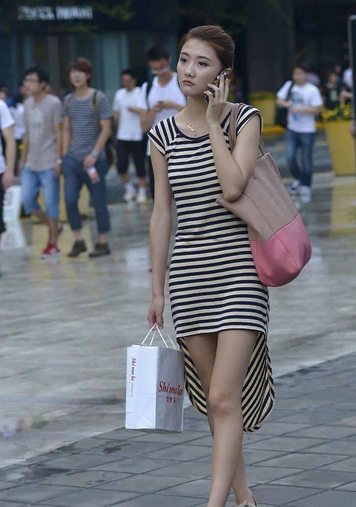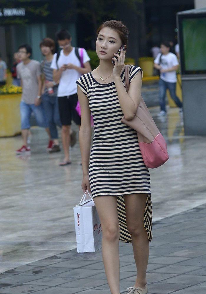 穿着新款条纹裙的美女【11P】
