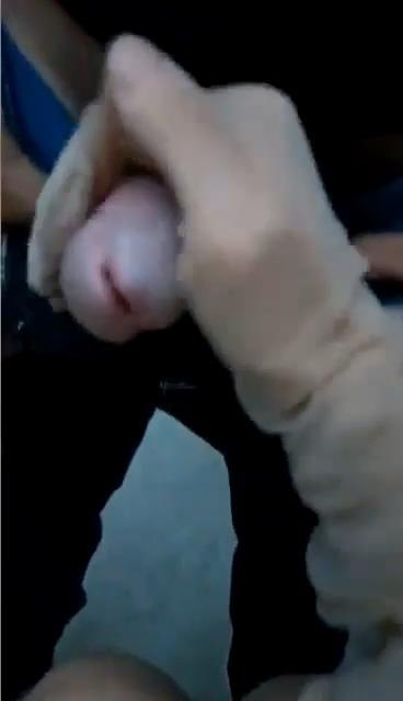 手套着丝袜,然后摸鸡巴!摸完以后用双脚开始摸弟弟