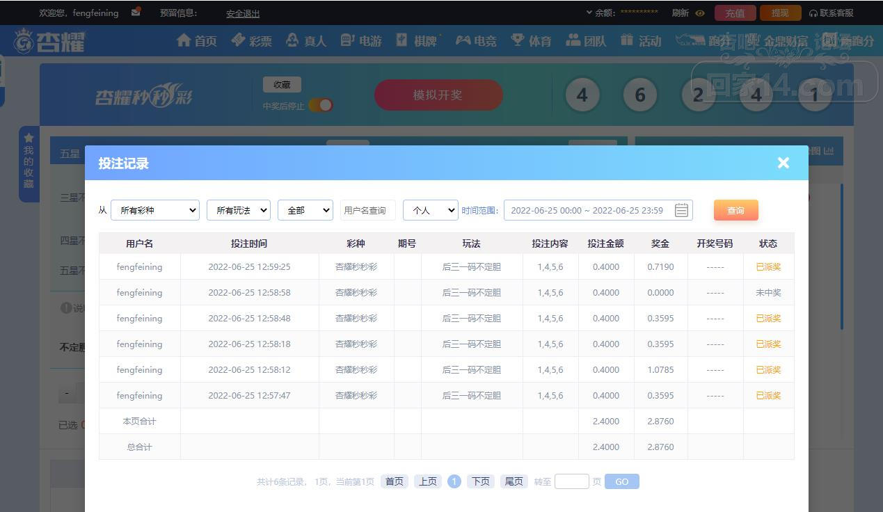 6-25杏耀秒秒彩运气挺不错