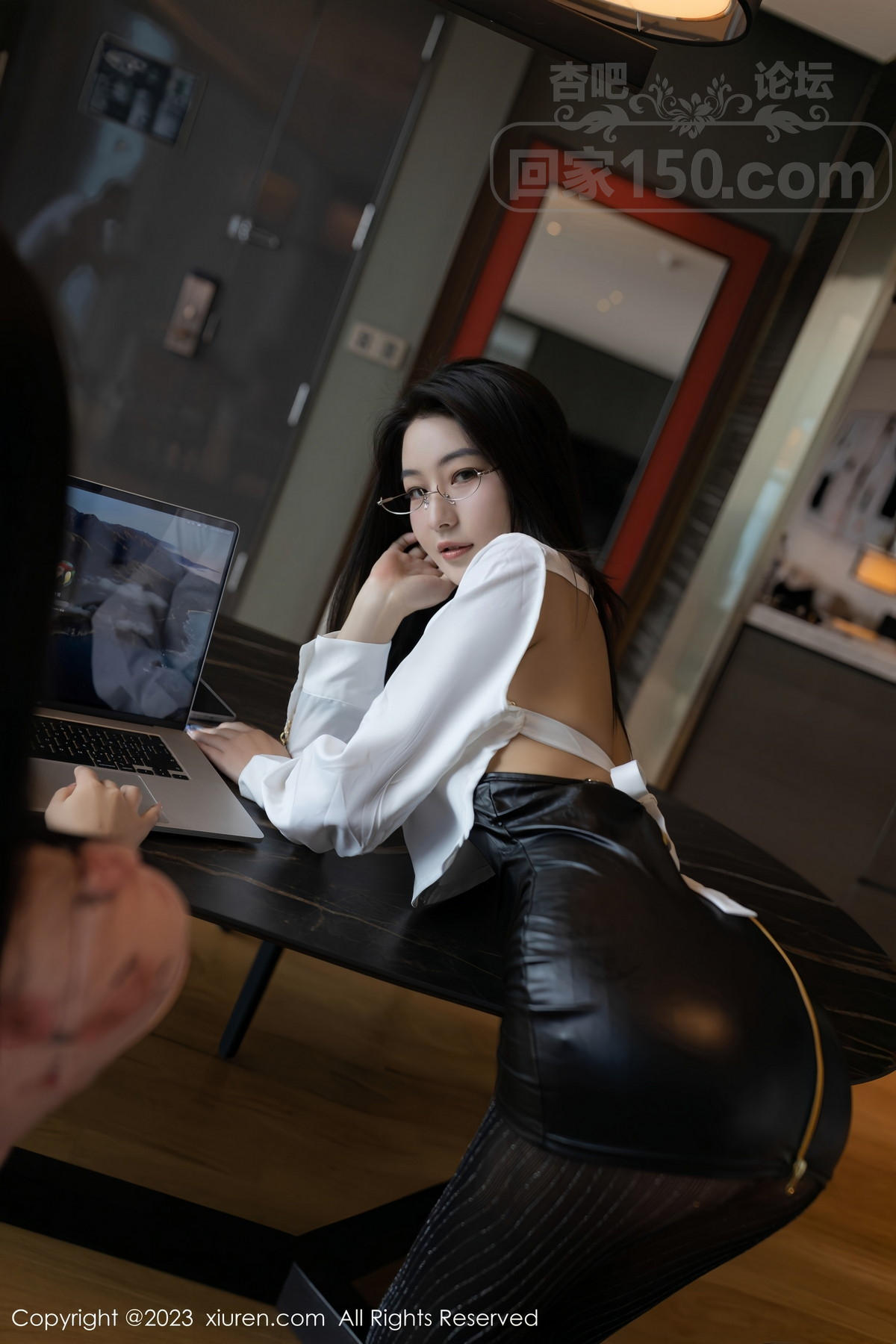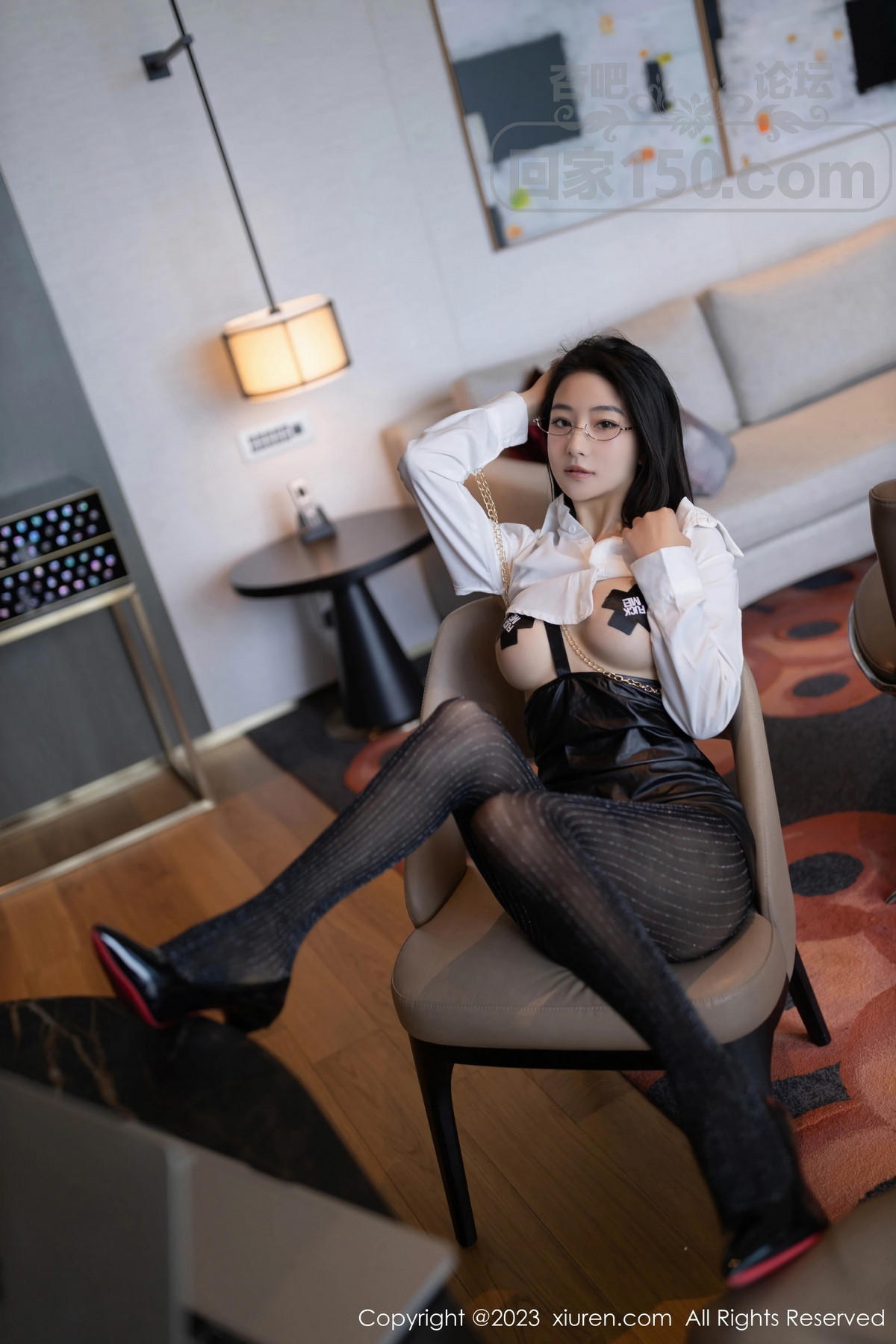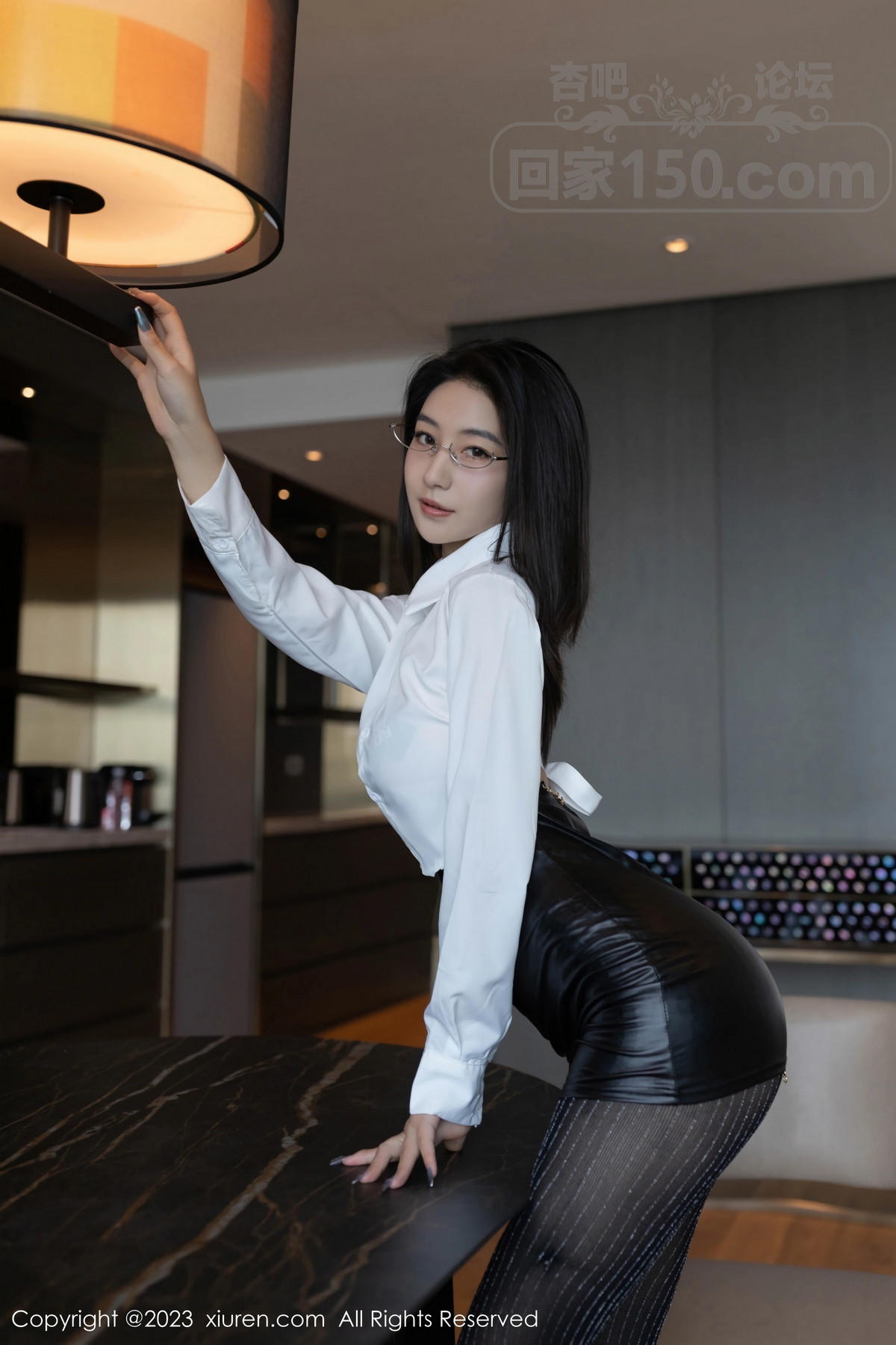 [美腿翘臀] 模特熊小诺性感白T配黑色皮短裙露超薄黑丝秀曼妙身姿诱惑写真【72P】 |