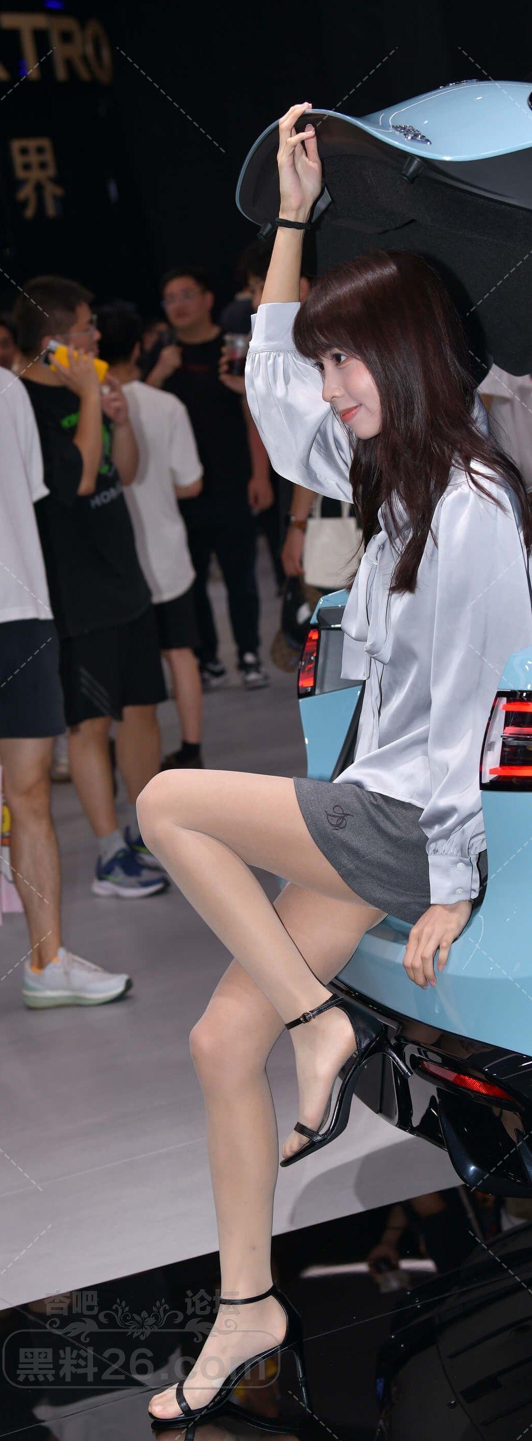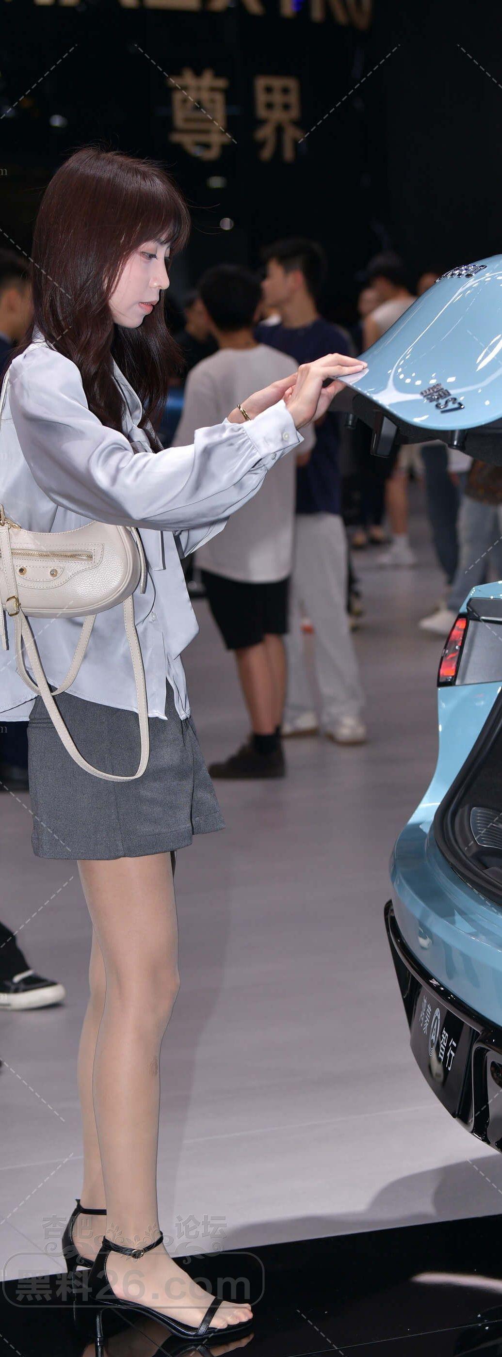 [街拍] 浅蓝色长袖灰色短裙小美女肉丝袜高跟鞋大长腿看车【10P】 |