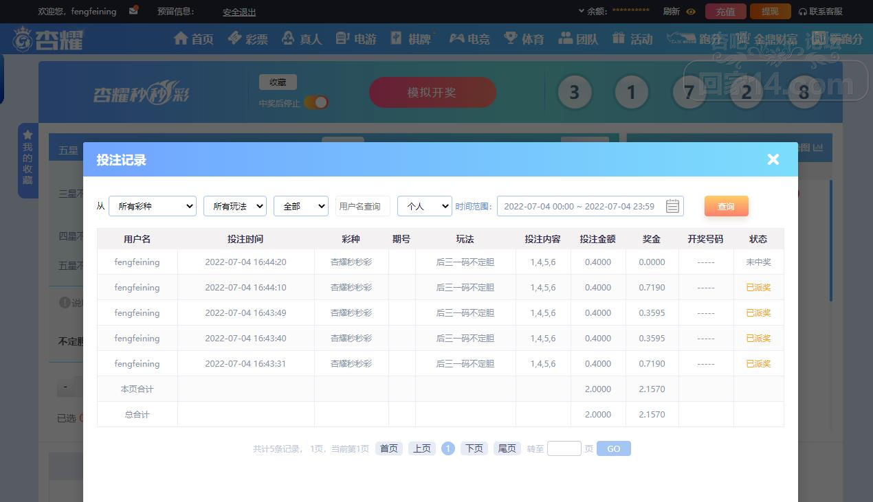 7-4杏耀秒秒彩运气挺不错