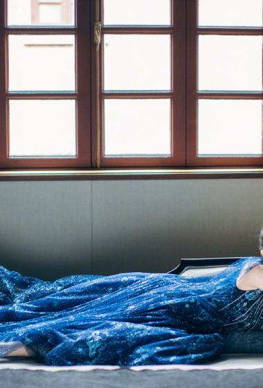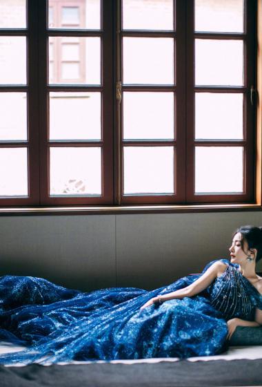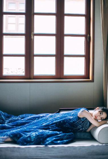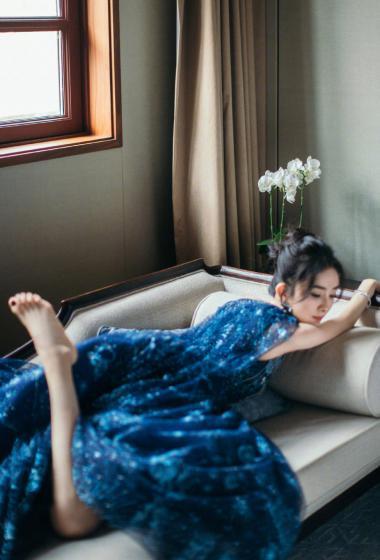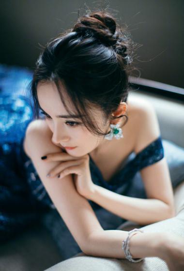 美女杨幂宝蓝长裙光滑香肩温婉妩媚【10P】