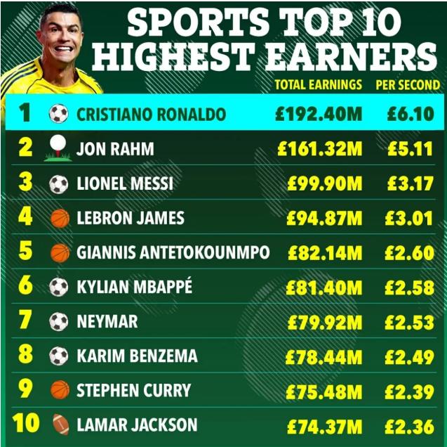 [|热帖精选] 【体育专栏】梅西仅第三!体坛年度收入排行榜,詹姆斯第四,姆巴佩未进前五 |