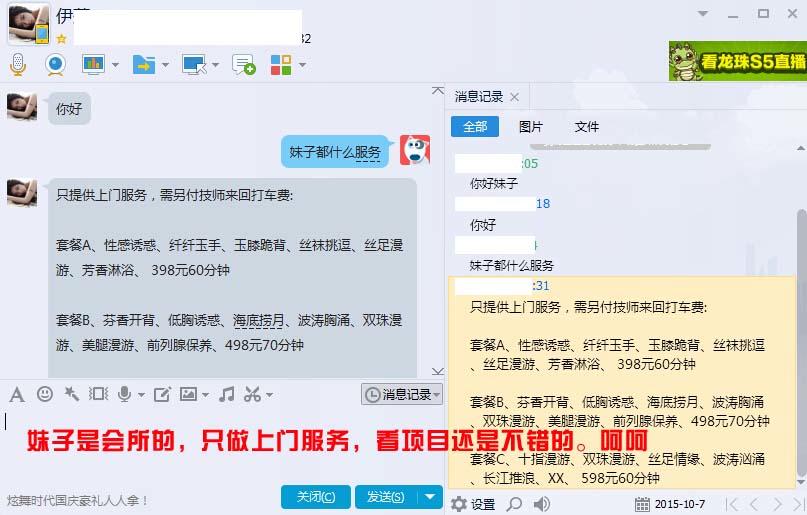 【寻欢时间】:2015年7月 【寻欢地点】:广西南宁市 【信息来源】:朋友推荐 【妹妹数量】:数十名 【环境设备】:上门服务(小区或者酒店) 【营业时间】:全天 【价格一览】:399,499,599,600,699 【服务星级】:★★★★技师多,服务好,身材棒 【重点推荐】:南宁的狼友可以试一下 【寻欢细节】:这家的技师亲身验证过两次了,做的是399的项目,包括指压,油推,透视装三点丁字裤,吊带丝袜,T推,玉足漫游(情趣挑逗),前列腺保养,淑女沐浴。技术非常不错,各种丝袜诱惑强力推荐喜欢丝袜丝足的狼友们尝试下,都是上门见面再付费的,不满意可以换,你给车费就好了。 【总体评价】:还不错 【联系方式】: 【照片分享】: